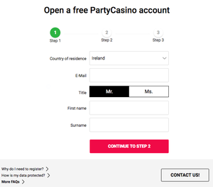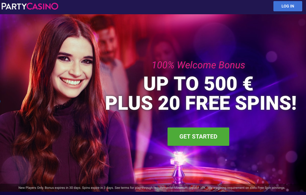 When you visit the Party Casino site you’ll be greeted with smiling brunette who welcomes you with the casino welcome bonus. Just click on the big green “Get Started” button to begin the registration process and get ready to party.