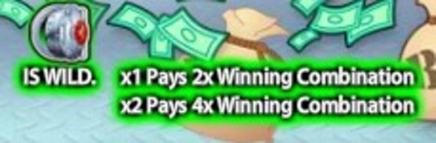 The wild has no value of its own but acts as a multiplier. One wild acts as a two times multiplier and two equal a four times multiplier.