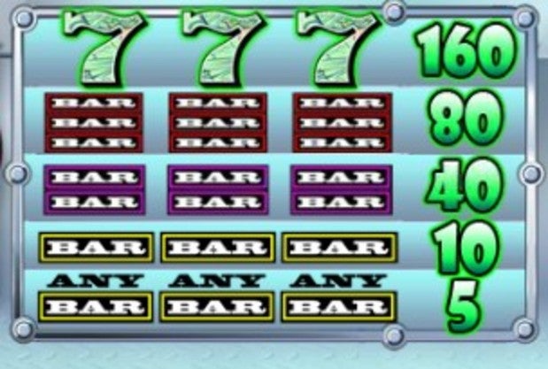 Green sevens have a value of 160x for three symbols. The worth of bar images varies from 80x for red to 10x for yellow. The ‘any bar’ symbols have the lowest value at 5x for three.